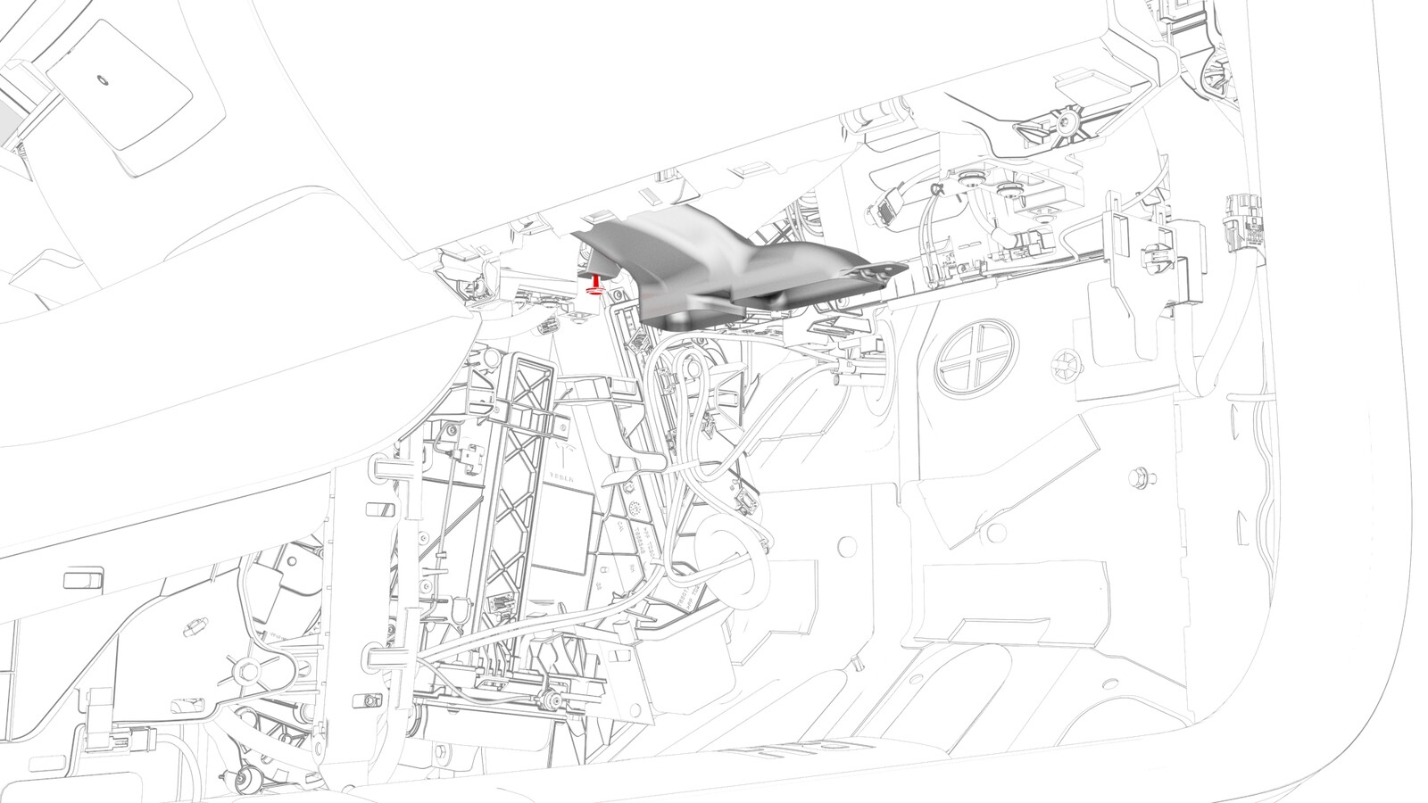 - 使用饰板工具松开将 RH 脚部空间进气槽连接到暖通空调模块的推拉式夹,然后从车上拆下 RH 脚部空间进气槽。
