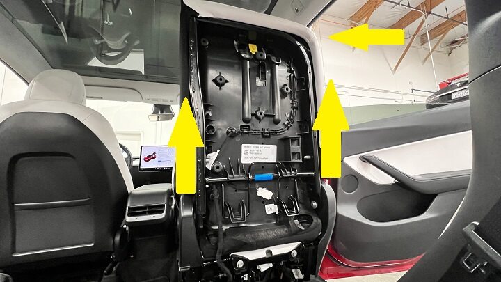 将第二排右侧座椅靠背罩放置在泡沫上,然后安装拱环(3 个)并紧固四周钩子和环形配件。