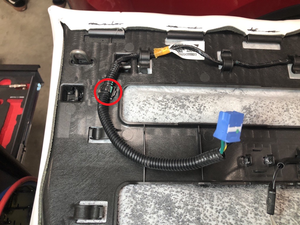- 从固定锁片上松开第三排座垫线束,然后从车上拆下线束。