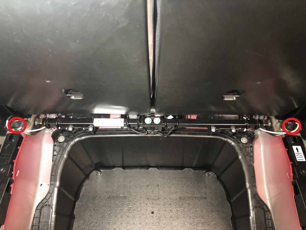 - 安装并用手拧紧将第三排 LH 座椅靠背总成连接到车辆的新内侧螺栓。