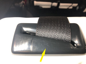 - 松开将第三排 LH 座椅 B 柱盖板外侧固定到 B 柱盖板内侧的夹子。