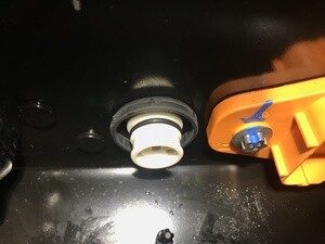 注将溢流阀外部的凸起与电池组上的开口对齐;此时只能稍微安装溢流阀的外部