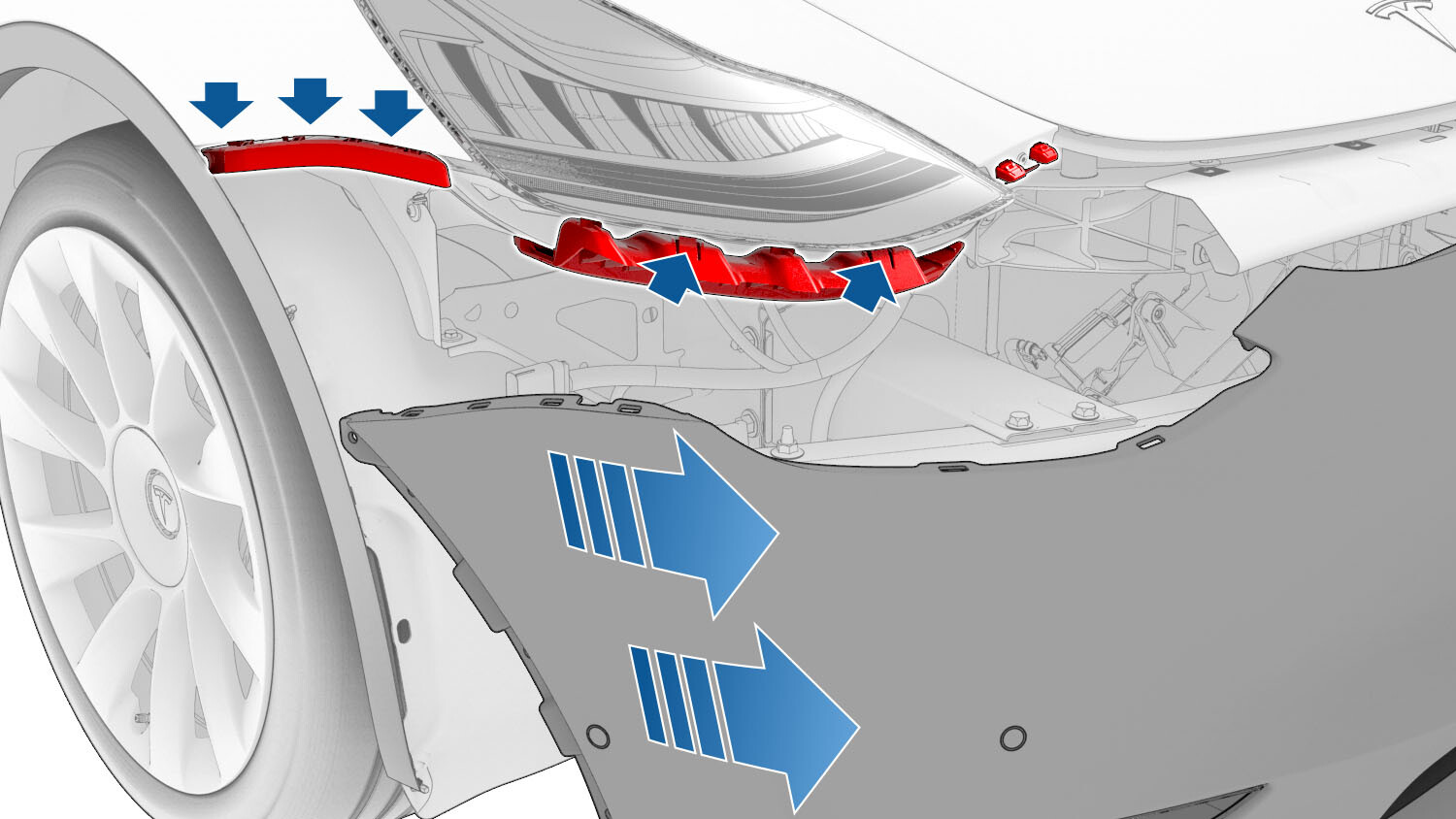- 断开电气连接器与 RH 轮罩中的前饰板之间的连接。