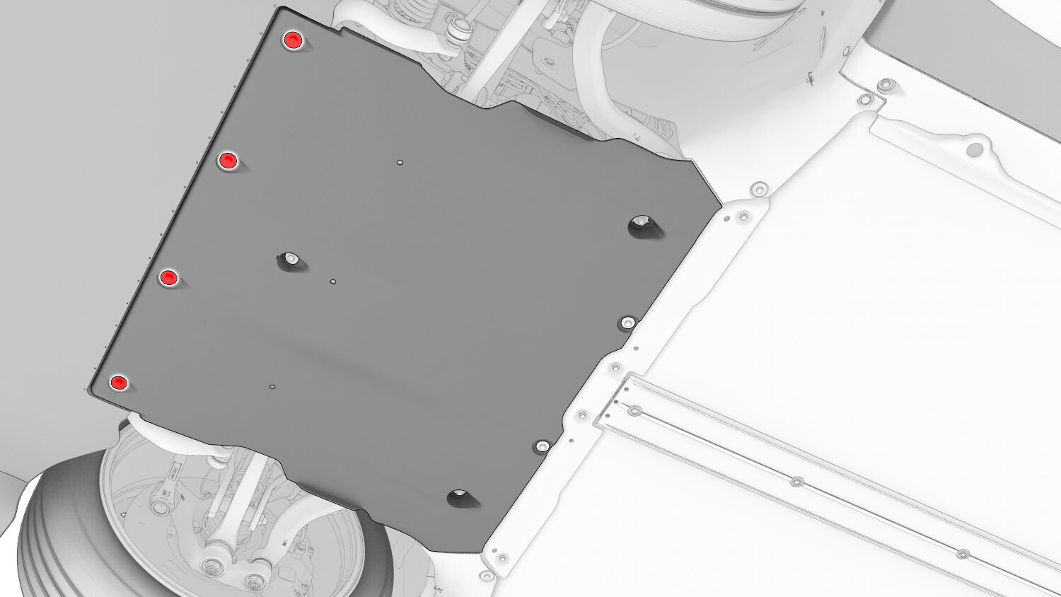 - 在将前流线型护板固定到车辆的螺栓 (x4) 的螺纹上,涂抹一串薄薄的 Loctite 222。