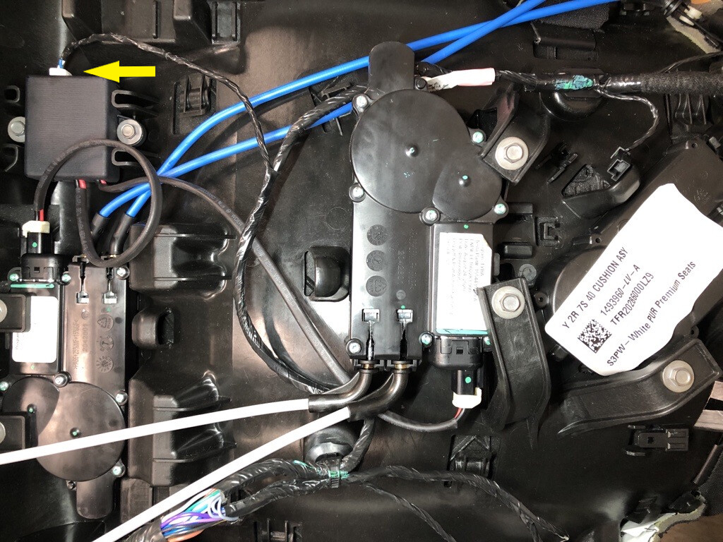 - 拧紧将第二排 RH 座垫线束连接到平台的夹子。