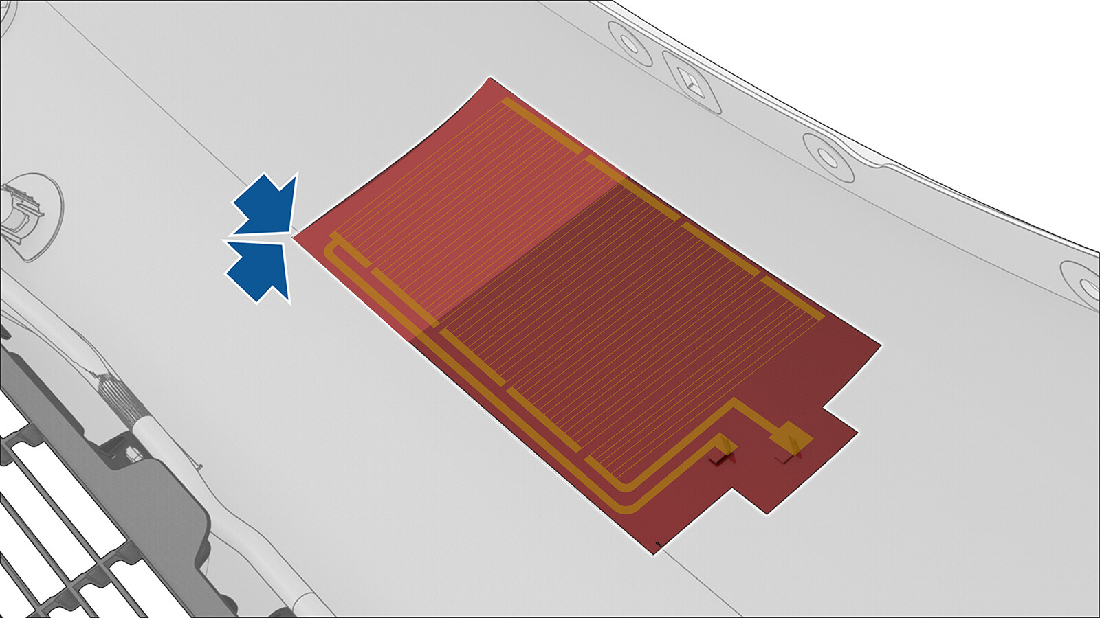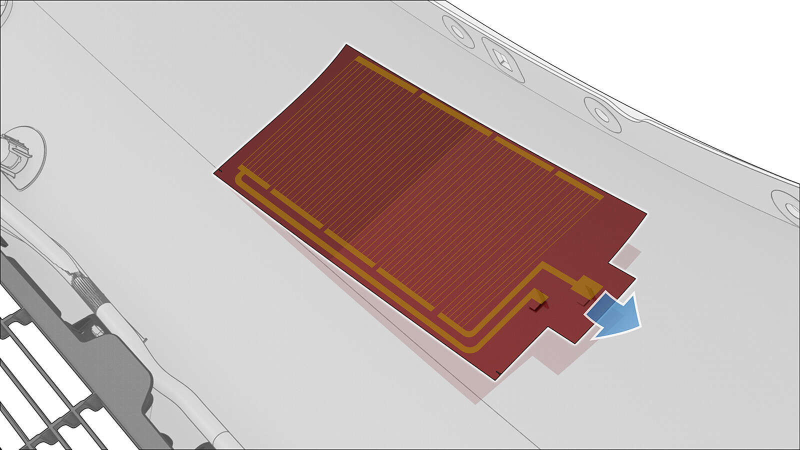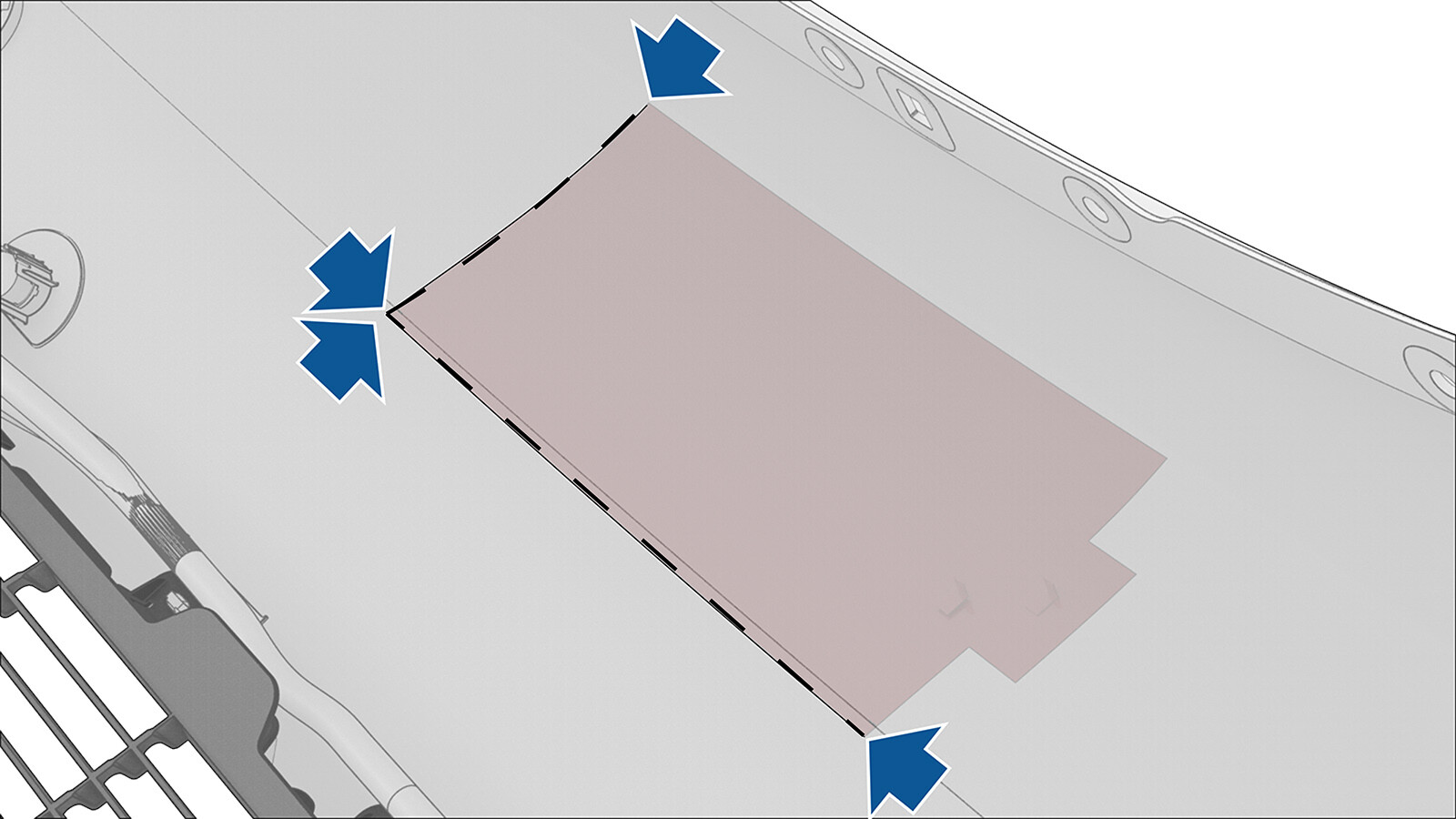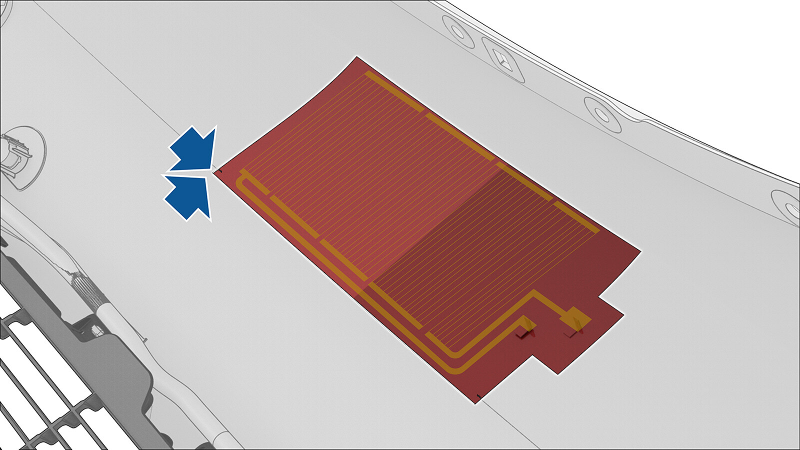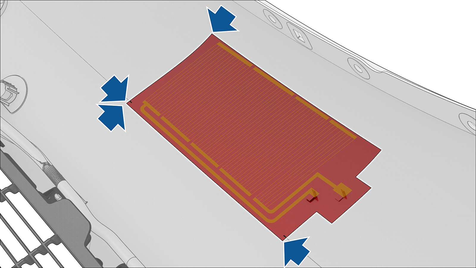 - 使用塑料饰板工具松开将雷达加热器固定到前饰板内侧的粘合剂。继续剥离雷达加热器,直至将其拆下。