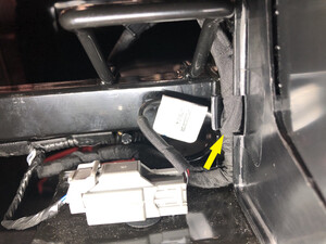 - 将第三排座椅框架线束安装到 RH 侧 B 柱盖板内侧。