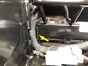 - 从 RH 侧 B 柱盖板内侧松开第三排座椅框架线束。
