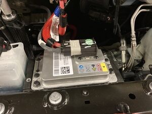 注2x connectors, Secure FRL first, Seat LV battery connection and push black connector lock inwards to secure, Engage green locking tab when fully seated