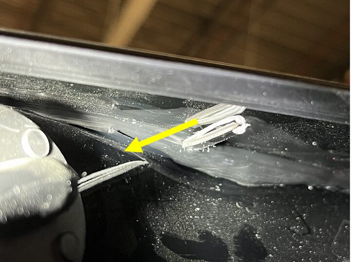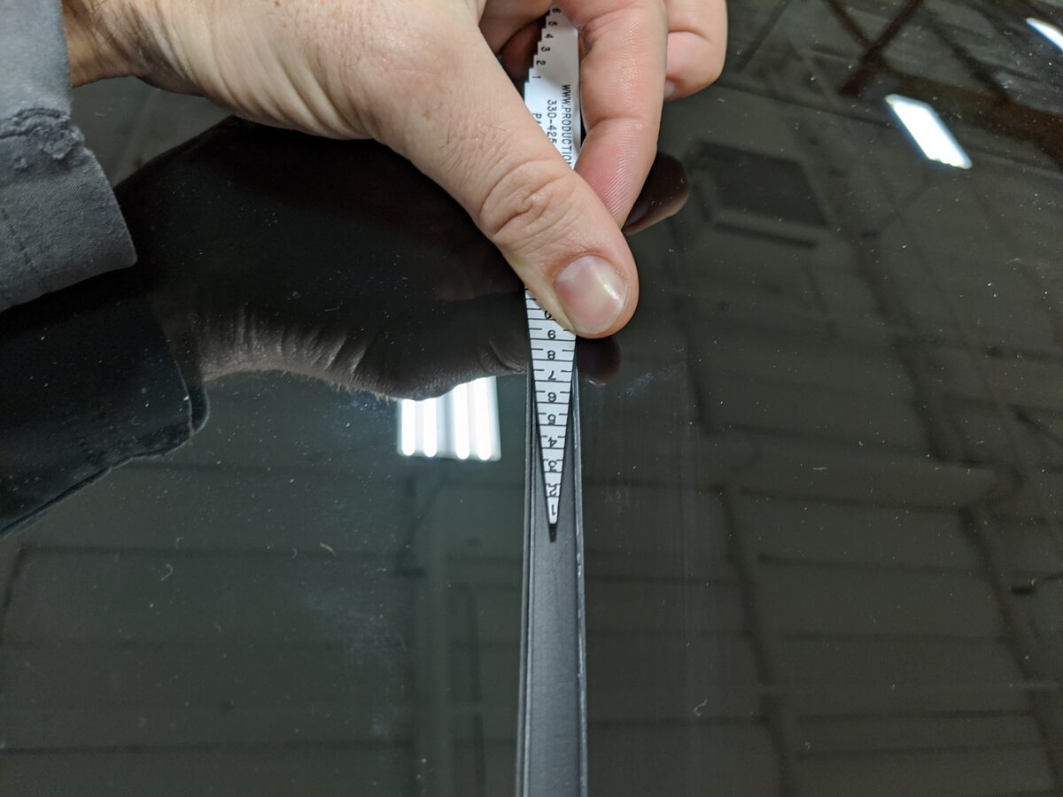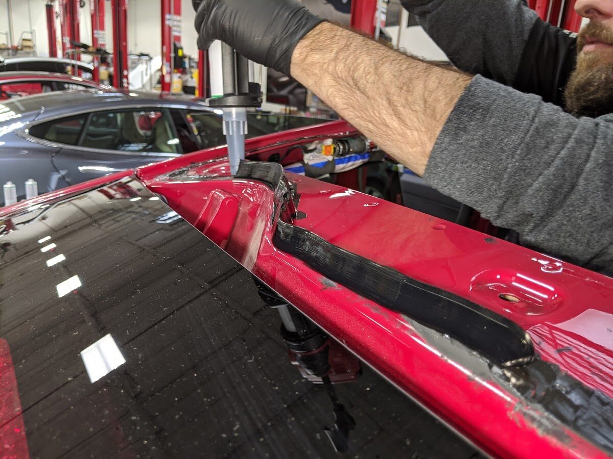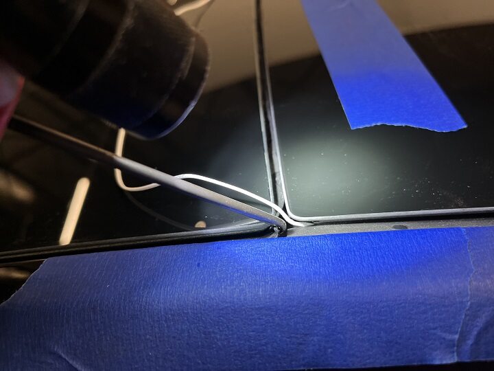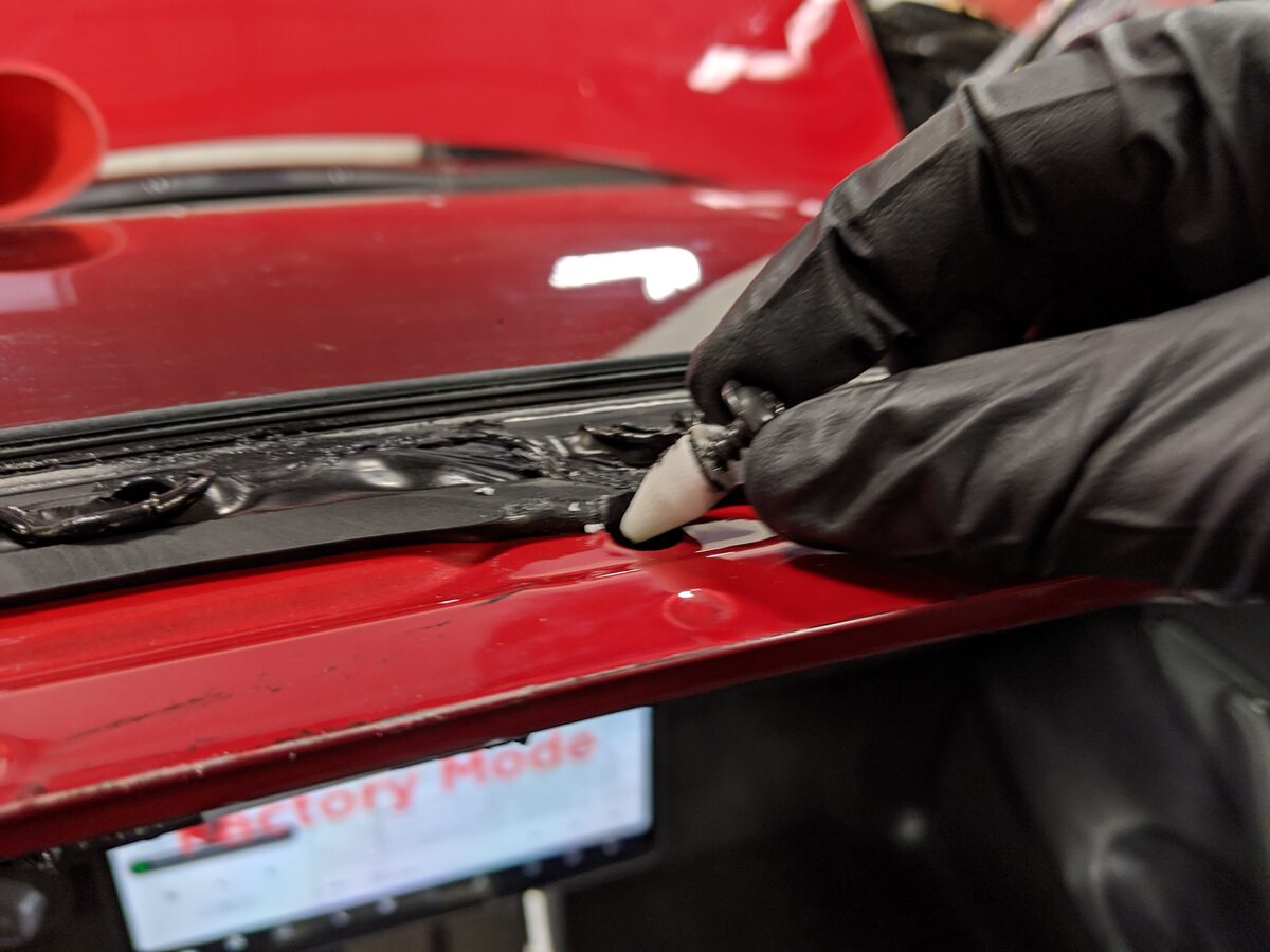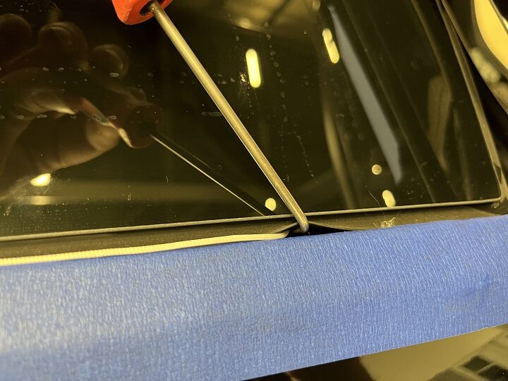 将新密封条放置在挡风玻璃密封条下方的玻璃前部。