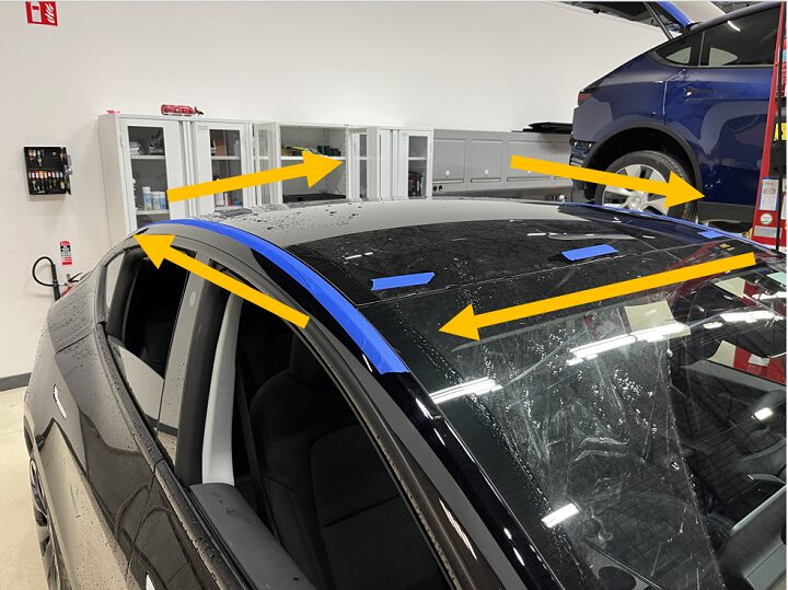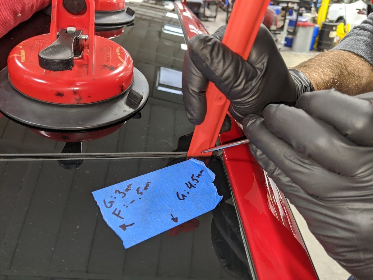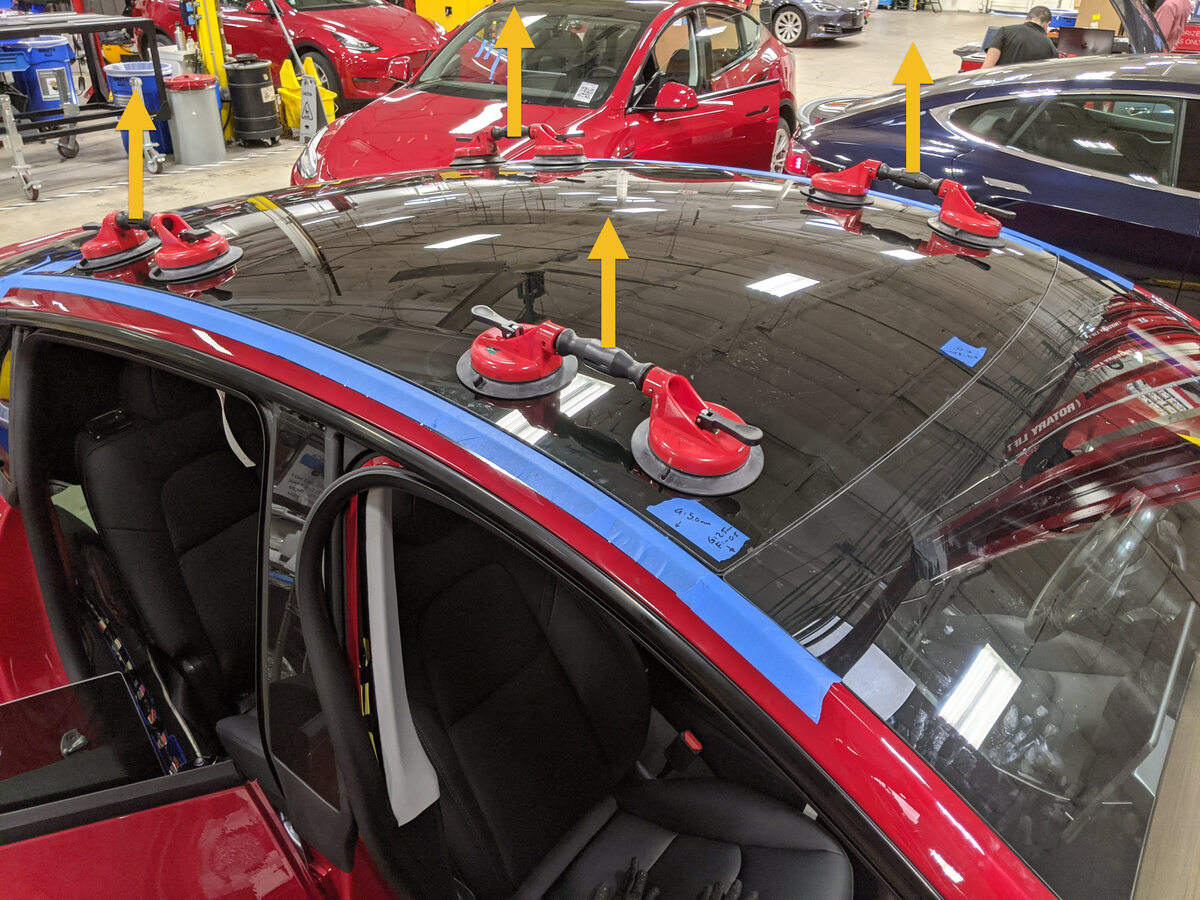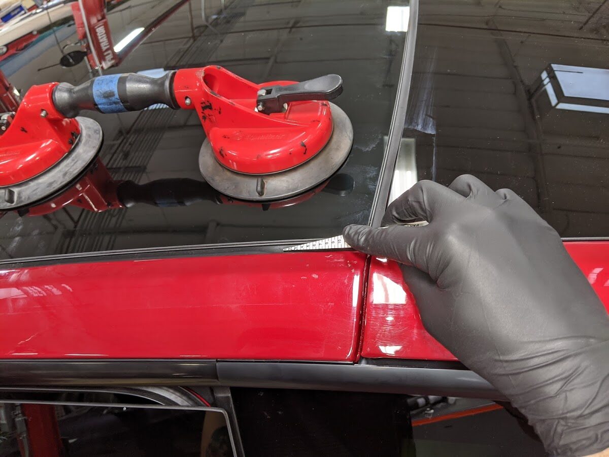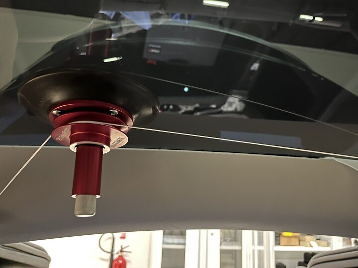 - 在协助下,将新车顶玻璃放置在车辆上,进行快速适配(干燥状态下)。
