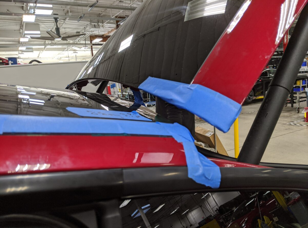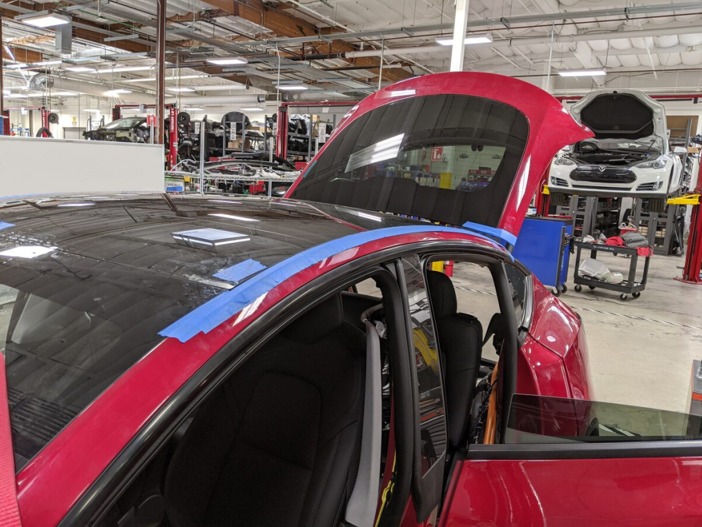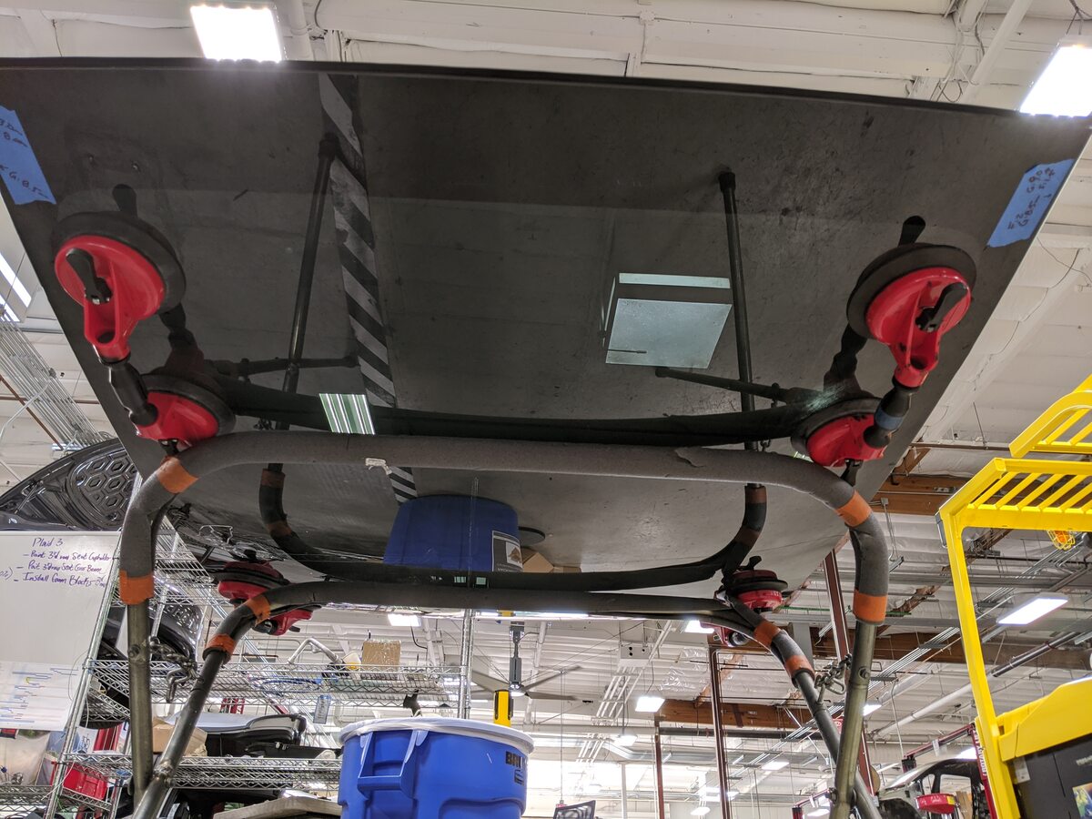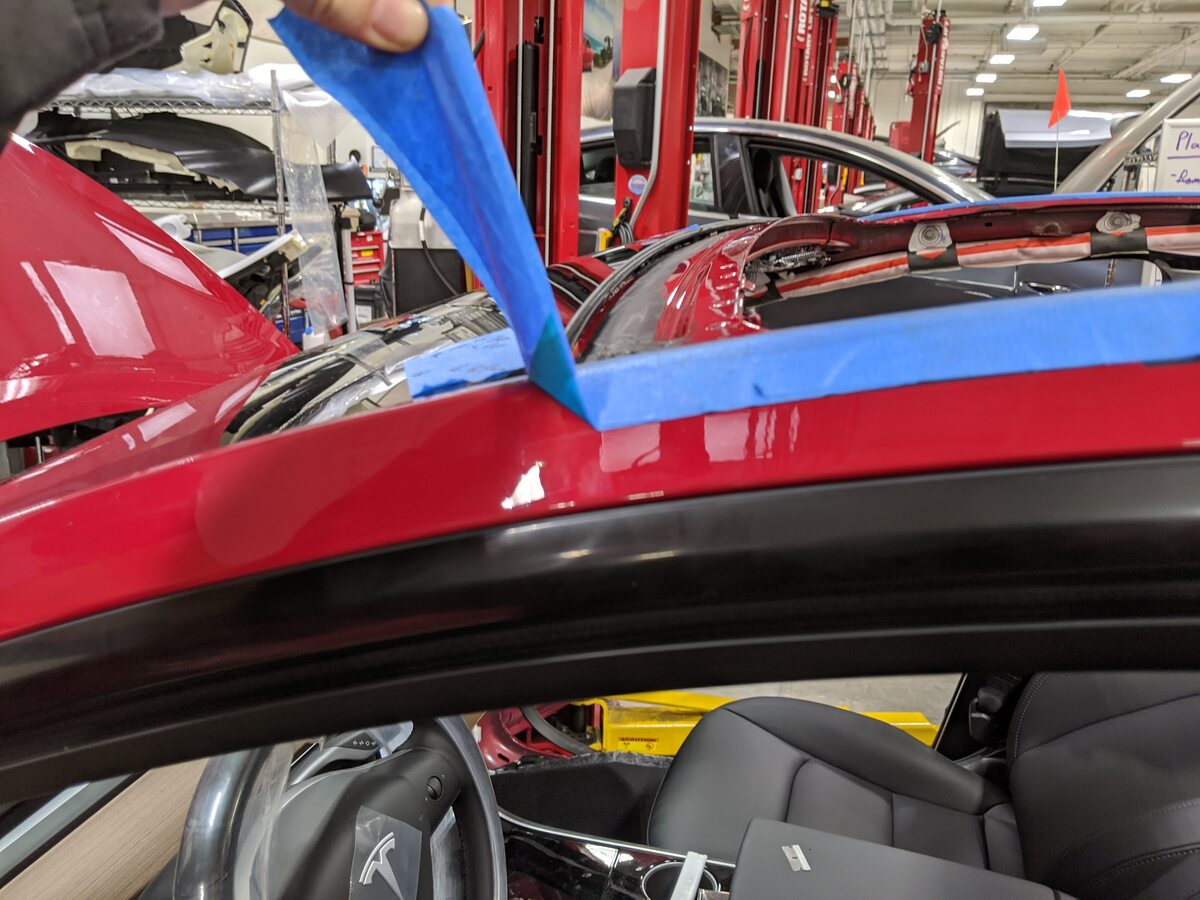 - 在协助下,将新车顶玻璃放置在车辆上,进行快速适配(干燥状态下)。