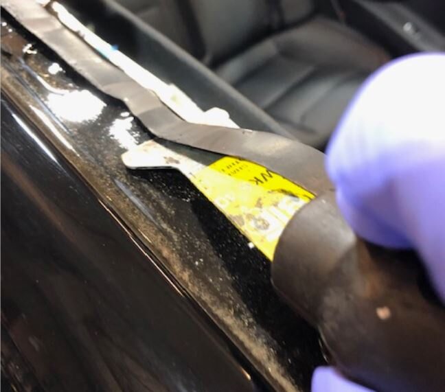 使用刮刀清理车身上的旧聚氨酯,然后使用异丙醇 (IPA) 湿巾擦拭车身,清洁表面。