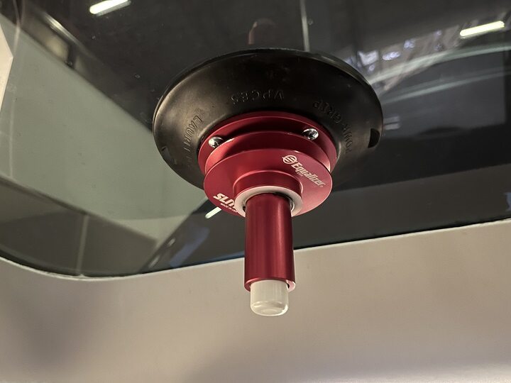 将切割工具固定到固定玻璃上,然后泵压切割工具,使其紧固在玻璃上。