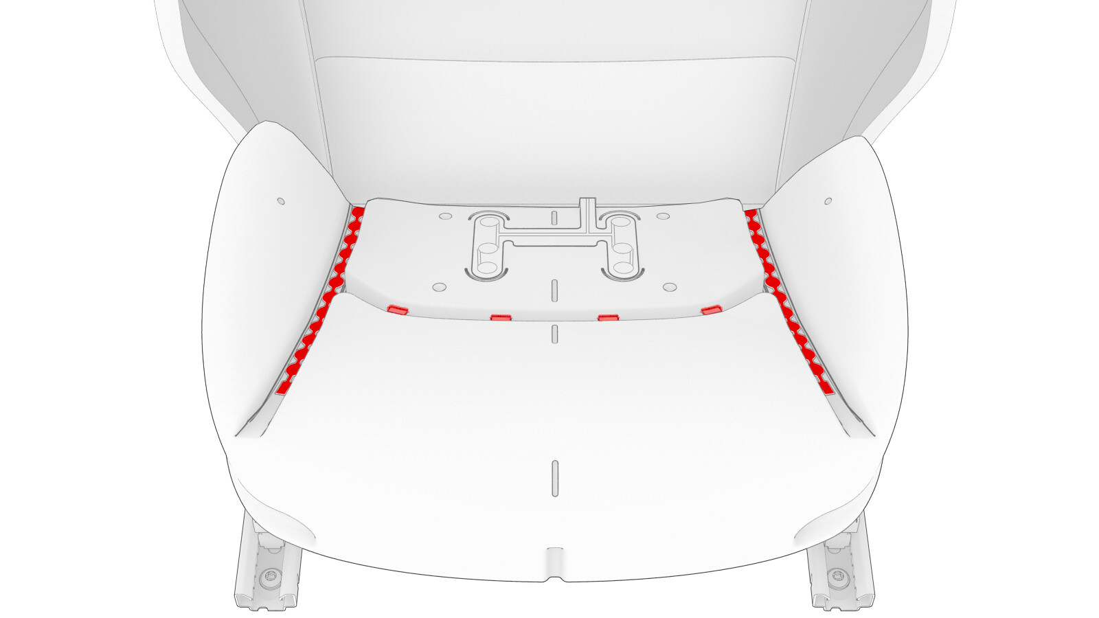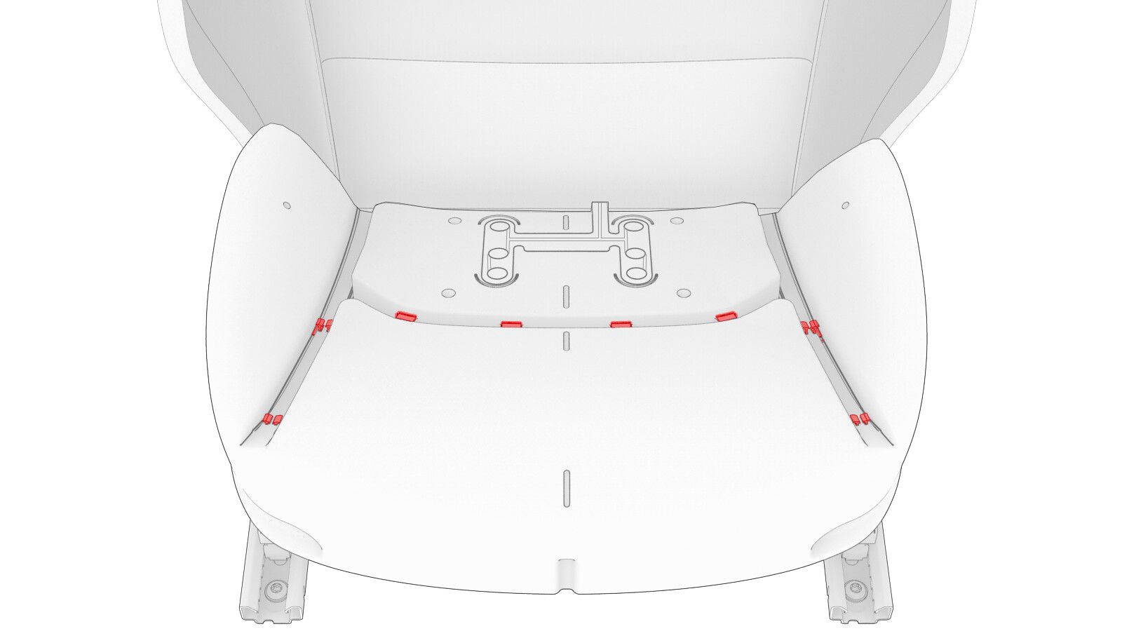 - 分别在前部、内侧和外侧区域,安装将座垫泡沫固定到座垫骨架的夹子 (x3)。