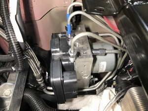 Position the master cylinder brake lines to clip at rear of hydraulic control unit bracket