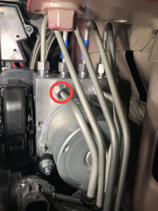 Release the master cylinder brake lines from clip at rear of hydraulic control unit bracket