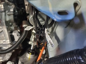 注2x connectors, Secure FRL first, Seat LV battery connection and push black connector lock inwards to secure, Engage green locking tab when fully seated