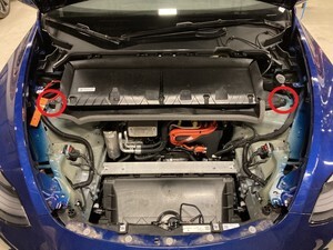 - Remove the front aero shield panel. See 面板 - 流线型护板 - 前(结构化电池组)(拆卸和更换).