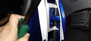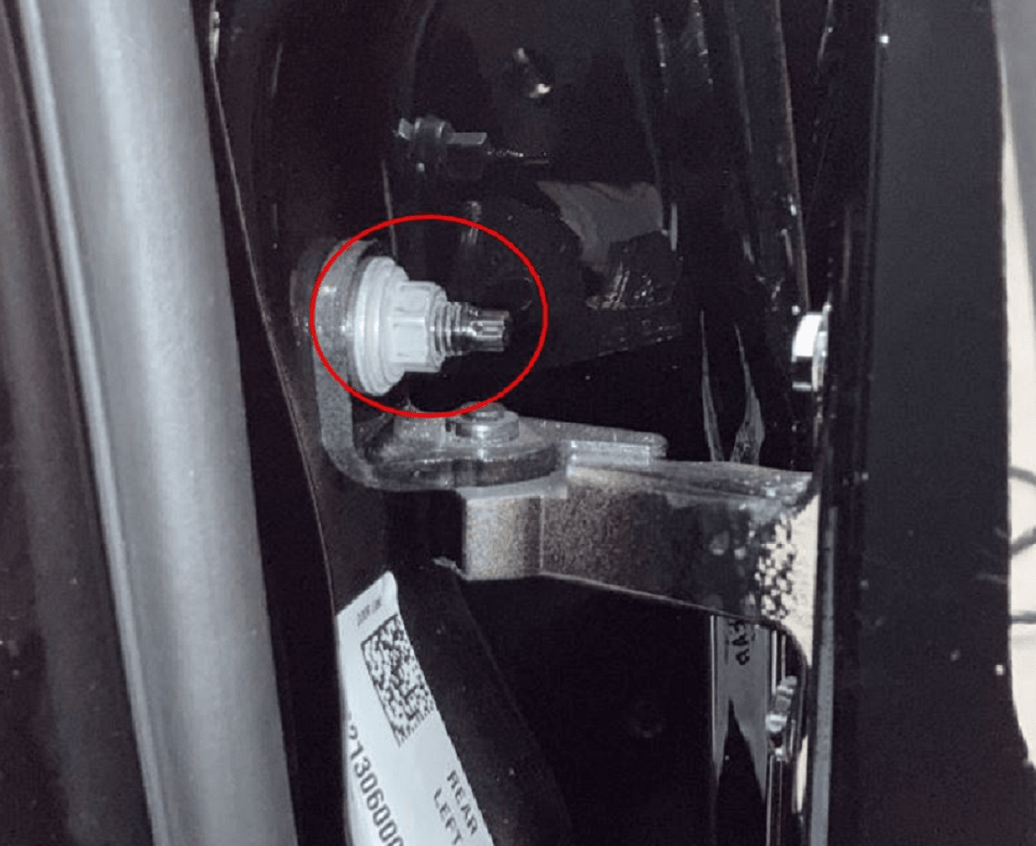 - 使用定位胶带确定 LH 后车门上部铰链在车身上的位置,然后用手拧紧将铰链固定到车身的螺栓。