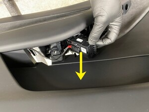 - 松开将下部螺栓帽固定到左前车门饰板的卡子(7 个),然后将螺栓帽从车门饰板上拆下。