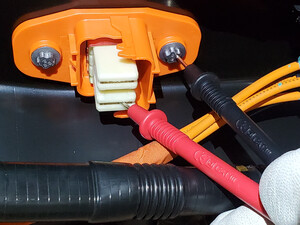 每次断开高压连接器的连接时,请使用高压万用表来检查连接器两侧是否存在高压。切勿使用
