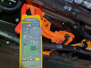- 如果电流超出 -0.5A 至 0.5A 的范围,例如 -0.8A 或 1.3A,请重新执行低压电源断开程序。请参阅12V/低压电源(断开和连接)。如果测量值仍超出 -0.5A 至 0.5A 的范围,请上报以寻求帮助。警告如果电流测量值超出 -0.5A 至 0.5A 的范围,请勿断开任何高压线束。