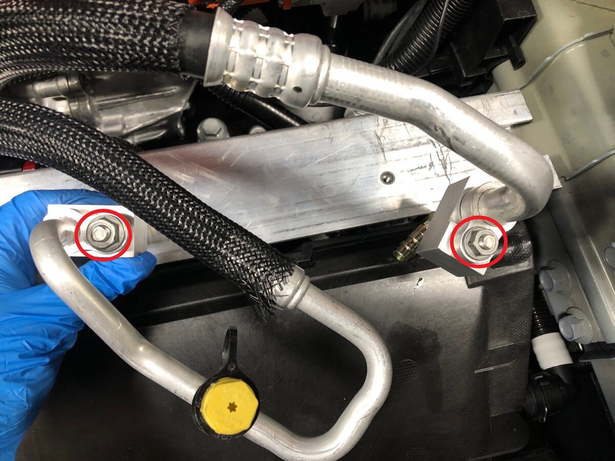 - 更换低位空调歧管至压缩机管路上的密封垫圈。