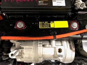 注确保高压线束支架与空调压缩机顶部的线束支座接合。