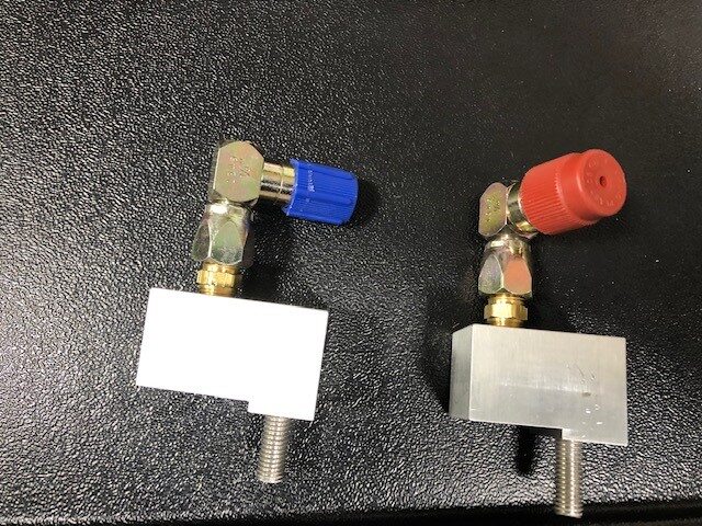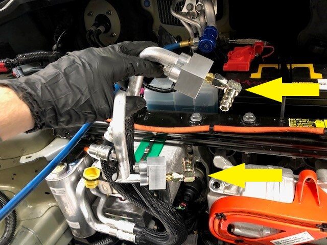 - 将空调冲洗适配器安装到空调歧管至压缩机管路上。