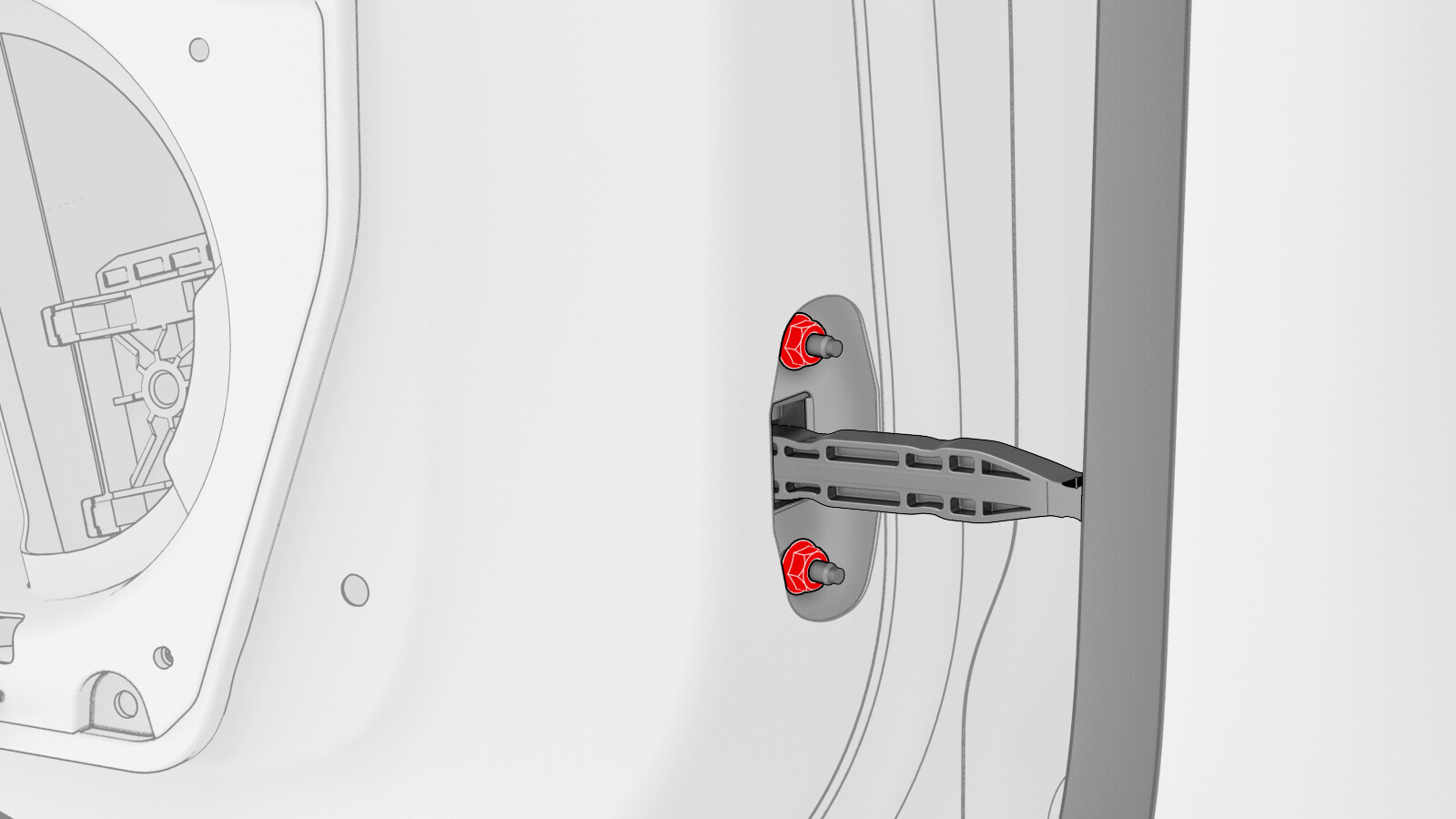 警告拧松车门限位器的螺栓,让车门能在开启极限范围以外自由摇动。 -