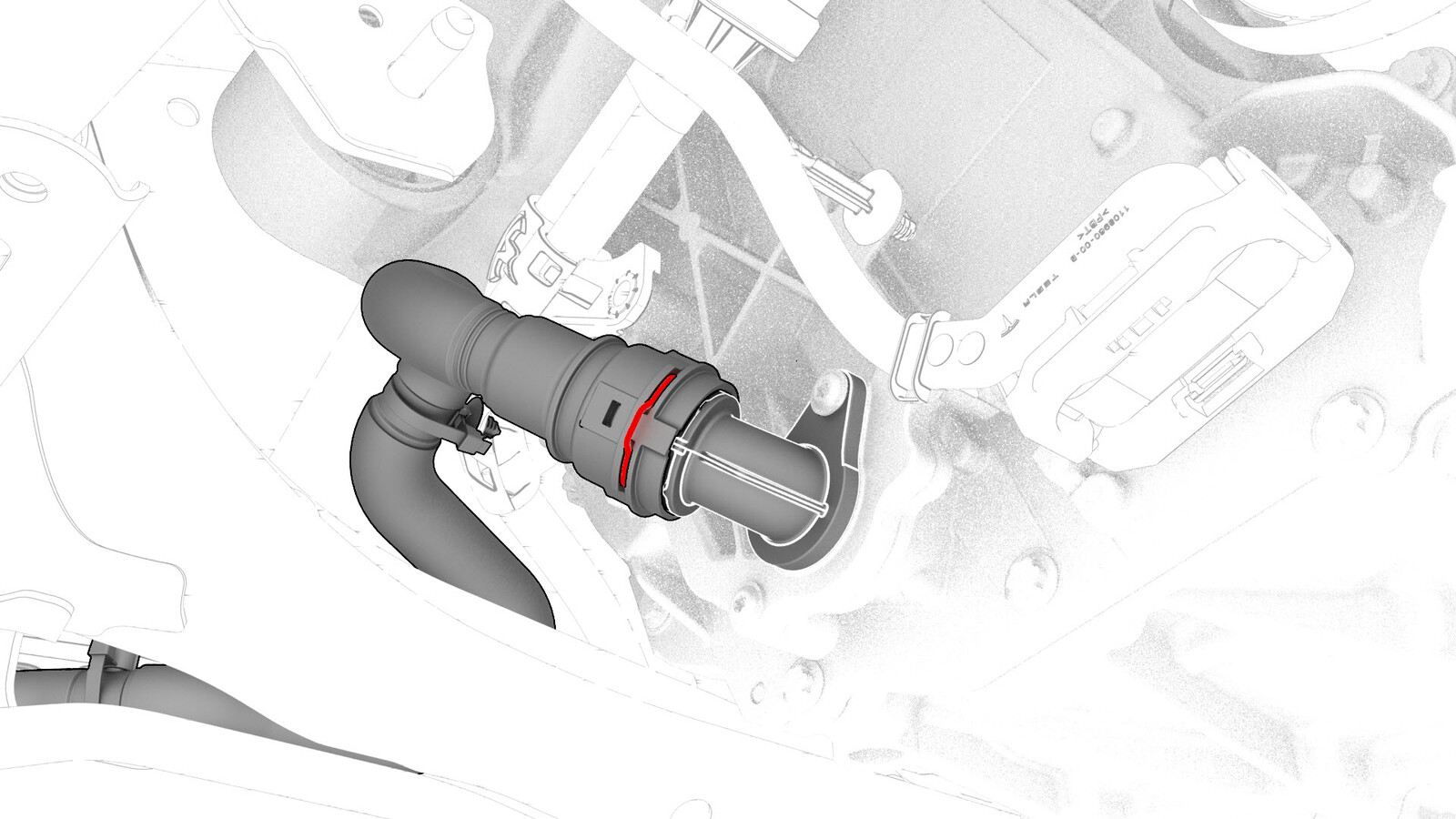 - 取下塞子,然后将后驱动单元变流器入口管连接到 55 度液力联轴节。