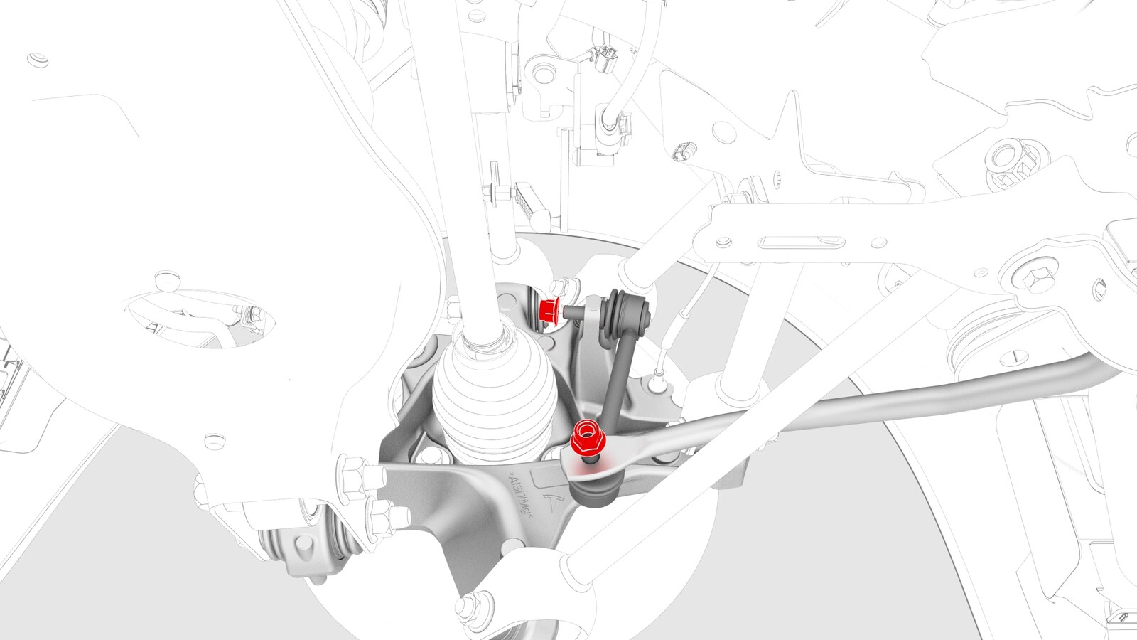 拆下并弃用将左侧下拉连杆固定到后平衡杆和左后转向节的螺母。