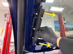 - 松开将 LH 掀背车门侧饰板支架固定到掀背车门总成的夹子,然后从车上拆下饰板。