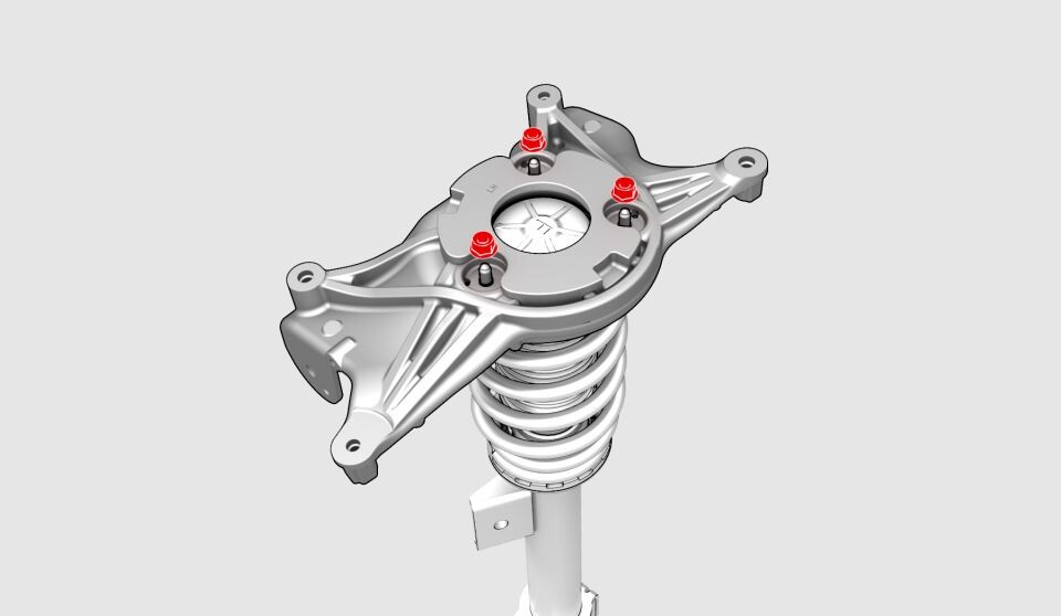 - 将前上方控制臂支座从左前弹簧和减震器总成上拆下。