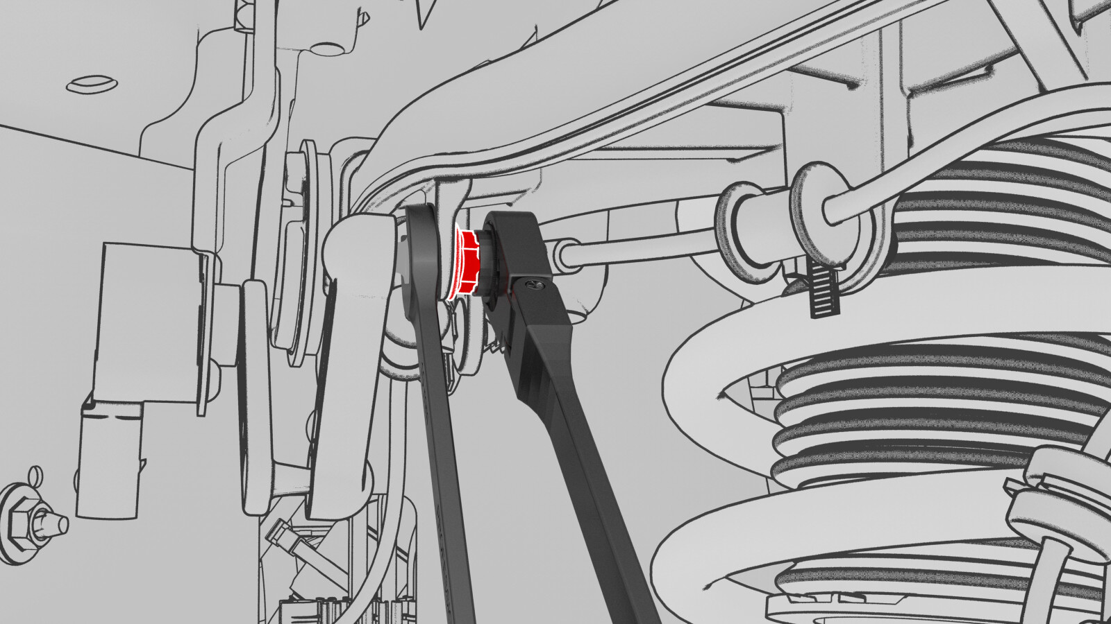 注对于较新的前上方控制臂,可能无法使用较新的前上方控制臂行驶高度工具。在这种情况下,请转至第#TASK_BLX_M54_YLB__GUID-BAFBAEE0-0A3A-4E64-97B9-7303E7030DE2步。