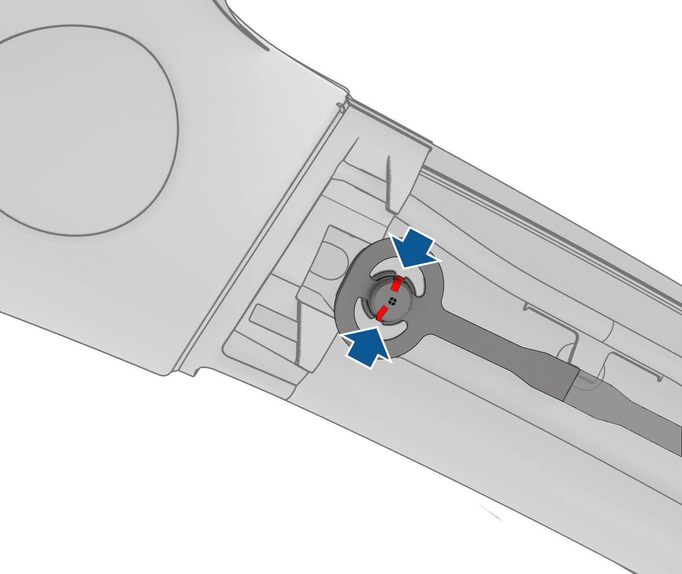 - 下压将左侧 A 柱上饰板系带固定到车身的锁片(2 个),然后从将系带车身上拆下。