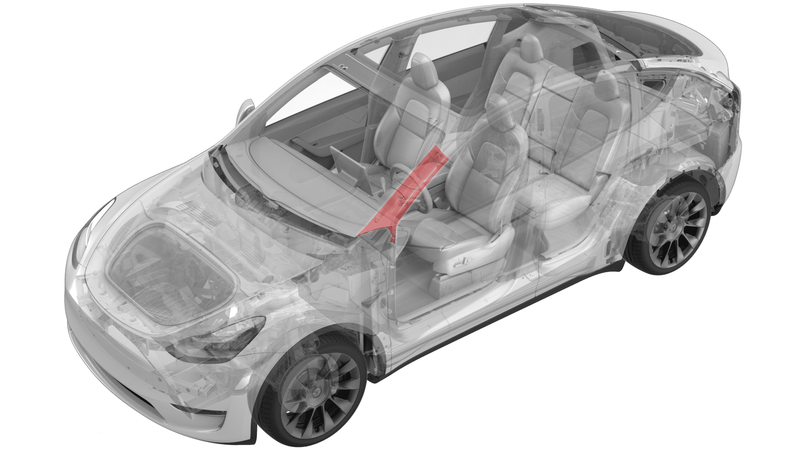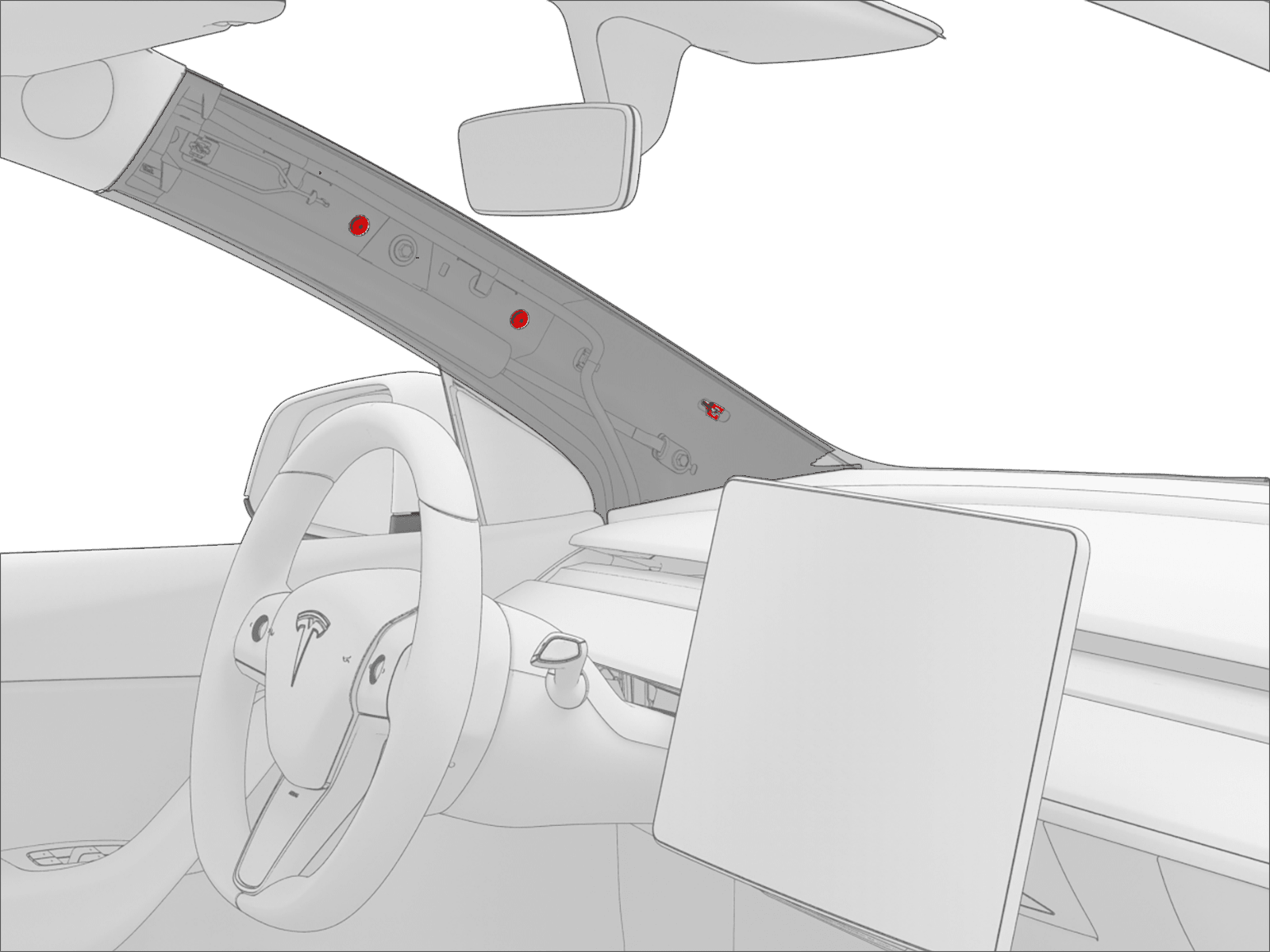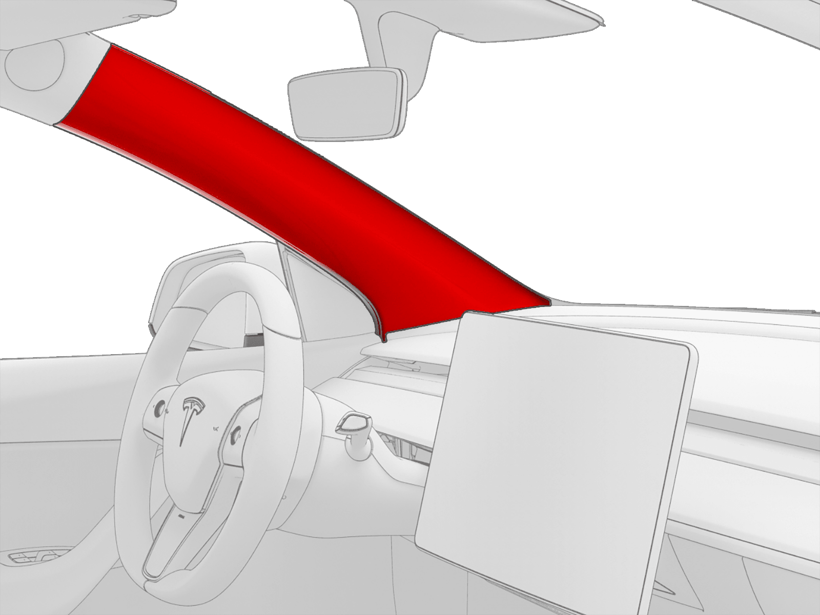 - 将左侧 A 柱上饰板系带放置在车身上,然后将系带压入车身以接合锁片(2 个)。