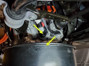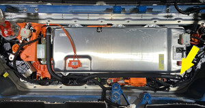 - Position coolant drain container underneath LH front of HV battery