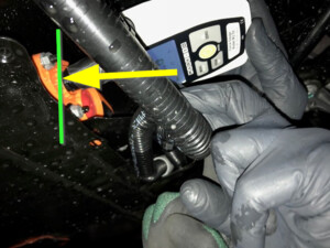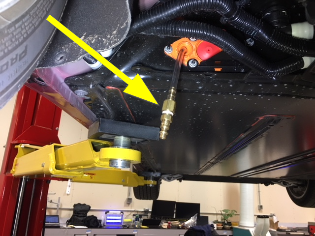 - 打开入口阀,然后从 LH 高压电池柱总成中的泄漏测试适配器中断开电池组外壳泄漏测试仪。
