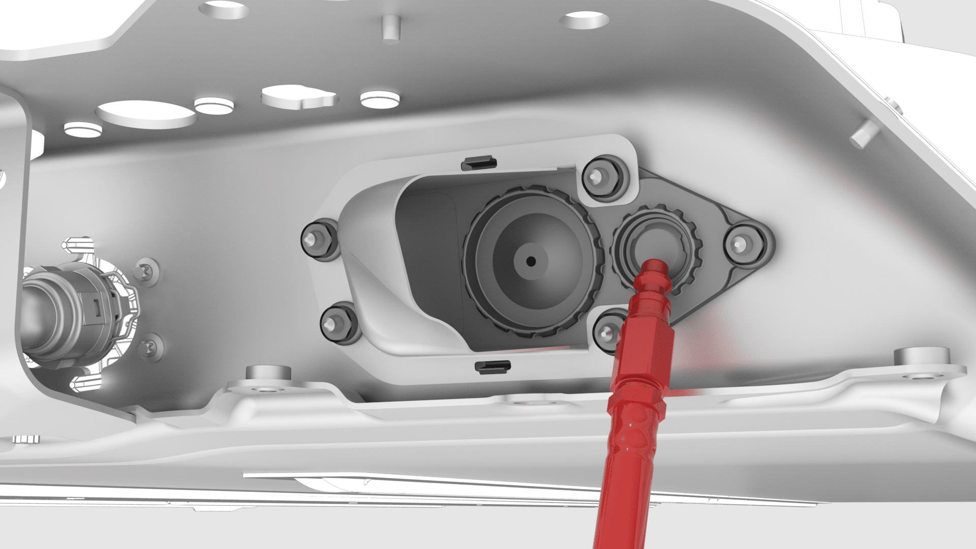 - 将电池组外壳泄漏测试仪连接到 LH 高压电池柱总成中的泄漏测试适配器。