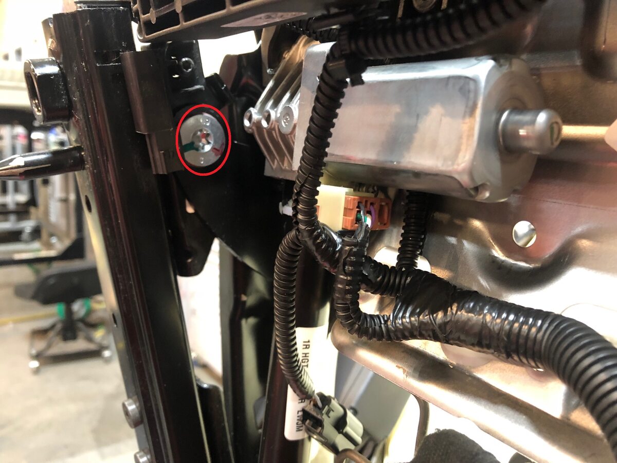 Install a new bolt that attaches the lift motor assembly to the rear RH link.