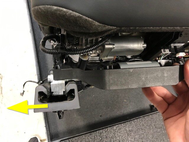 - Use a clip prytool to remove the harness clips (x2) from the RH front seat track motor.