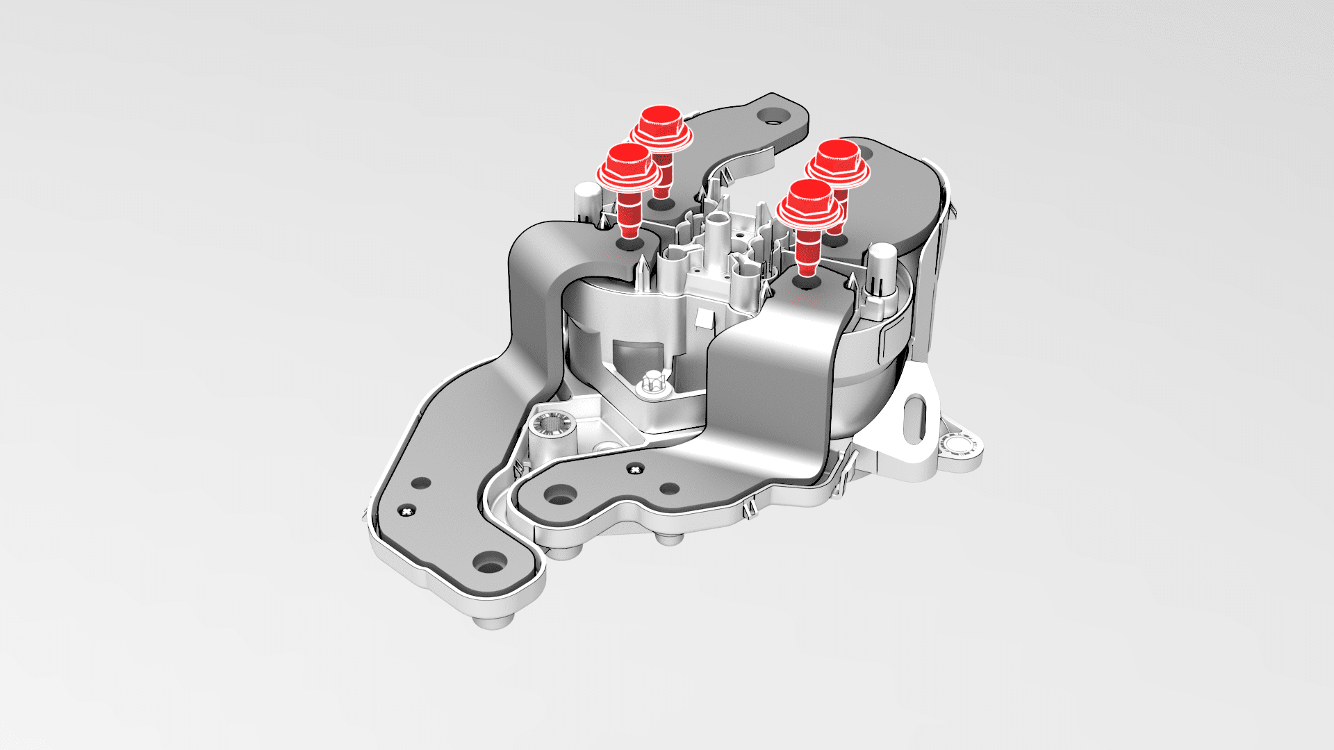 5.5 Nm (4.1 lbs-ft) - 将正负极电源输入和直流链路母排安装到快充触点开关上,然后安装新的螺栓(4 个),将母排固定到触点开关。