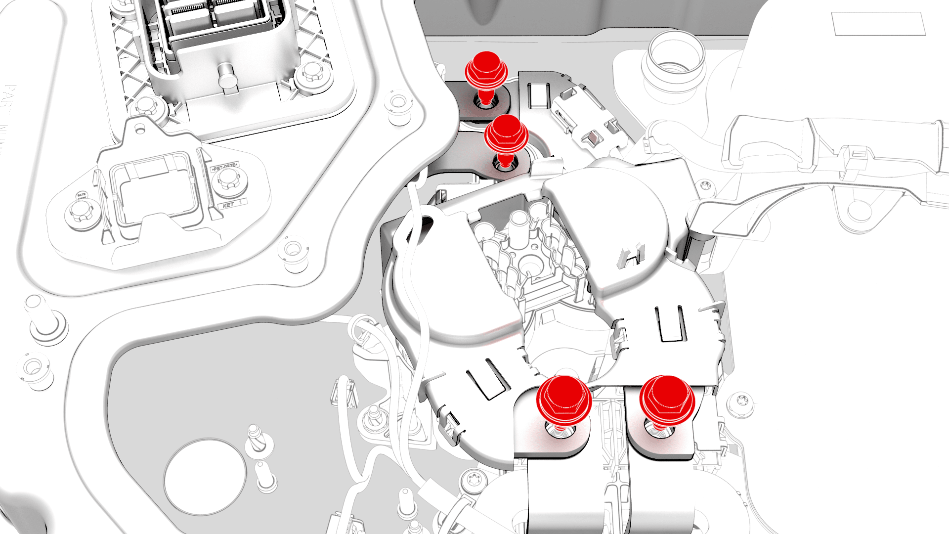 - 松开将高压电池交流输入线束盖板固定到功率转换系统的卡子。