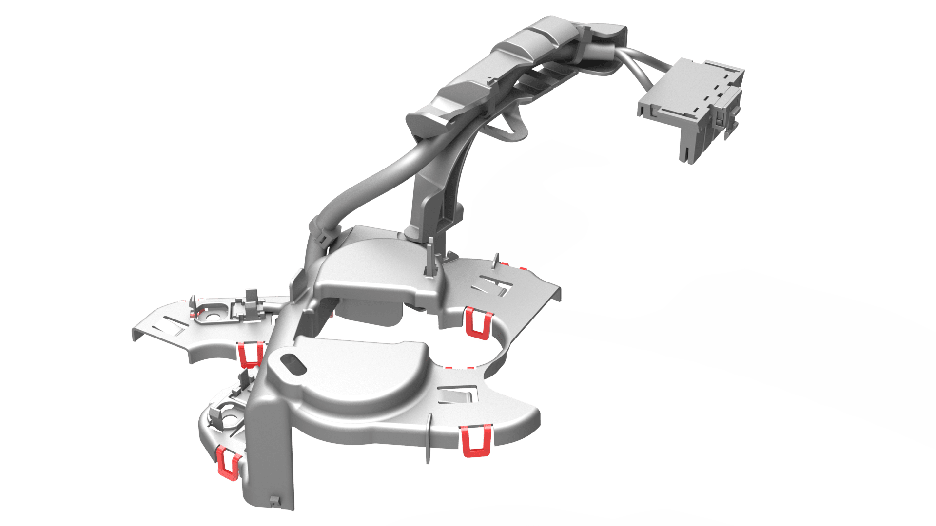 - 安装将高压电池高压电池仓线束固定到高压电池快充触点开关的夹子。