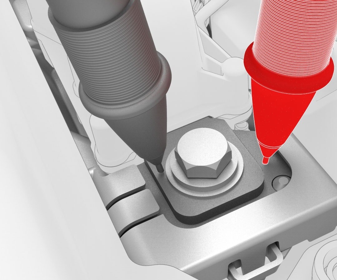 将螺栓预先拧至 15 Nm,然后回拧半圈,将扭矩调整为 5 Nm 后再拧 60 度,然后用油性记号笔标记螺栓。
