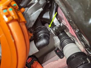 注下部软管位于高压电池的 RH 前部。