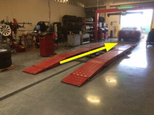 注将举升机升离锁止位,然后固定住释放杆,使锁具在车辆降下时保持活动自如;将车辆设置到适宜的作业高度