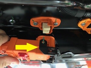 - 将高压电池仓探针盖从高压电池仓盖板上拆下。